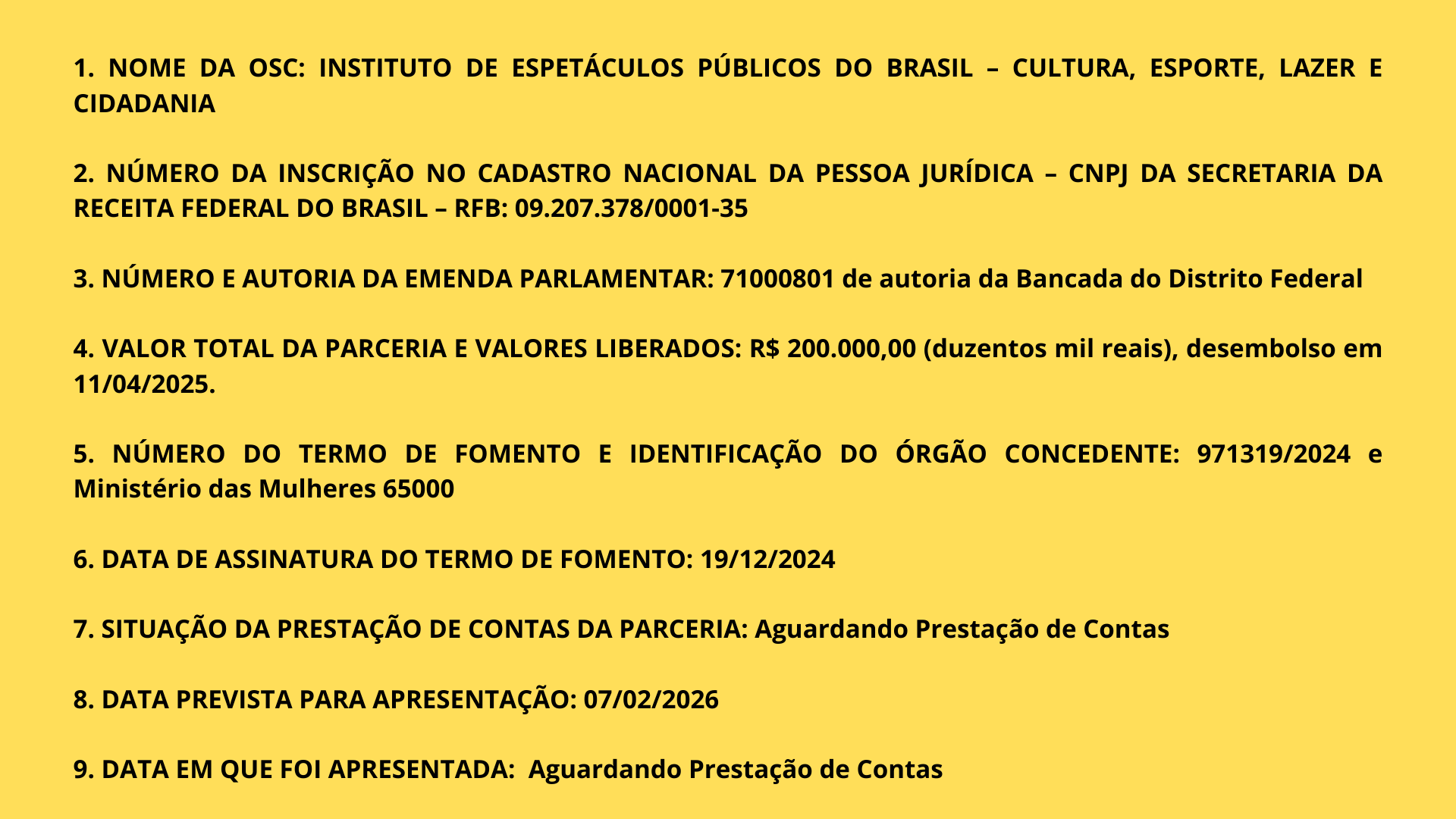 PROJETO: MULHER – INSTRUÇÃO E CAPACITAÇÃO TERMO DE FOMENTO: 971319/2024 PROCESSO ADMINISTRATIVO: 21260.002326/2024-66