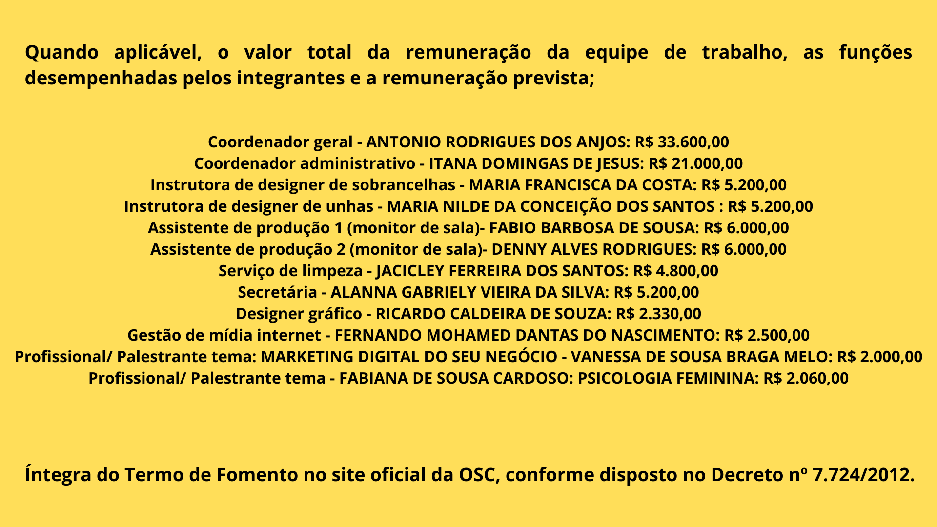 Transparência ano 2024 – 2º termo de fomento firmado Projeto MULHER – Instrução e Capacitação